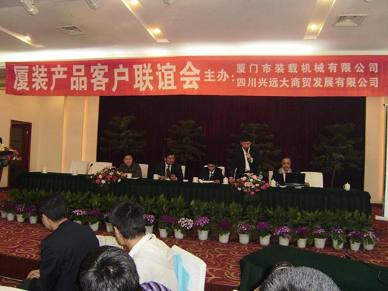 2009年3月21日上午,廈門市裝載機有限公司及四川興遠大商貿發(fā)展有限公司共同舉辦的“廈裝機械客戶聯(lián)誼會”在什邡市長江賓館舉行。廈門市裝載機有限公司副總經(jīng)理王曉忠、技術中心副主任王理和什邡市工商聯(lián)主席鄧家宜出席會議。